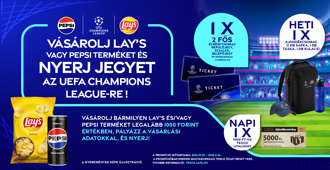 A MAGYARÜDÍTŐ FORGALMAZÓ KFT. ÉS A TESCO „VÁSÁROLJ LAY’S VAGY PEPSI TERMÉKET ÉS NYERJ JEGYET AZ UEFA CHAMPIONS LEAGUE-RE!” ELNEVEZÉSŰ NYEREMÉNYJÁTÉKÁNAK